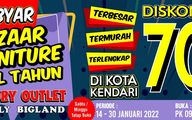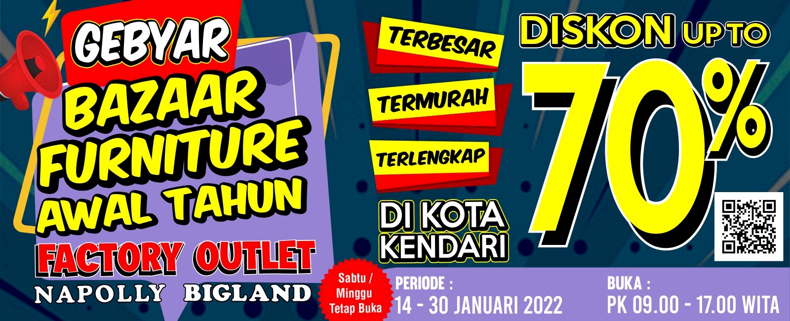 Gebyar Bazaar Furniture Awal Tahun Napolly Bigland yang diskonnya sampai 70%. Mulai tanggal 14 – 30 Januari 2022 :