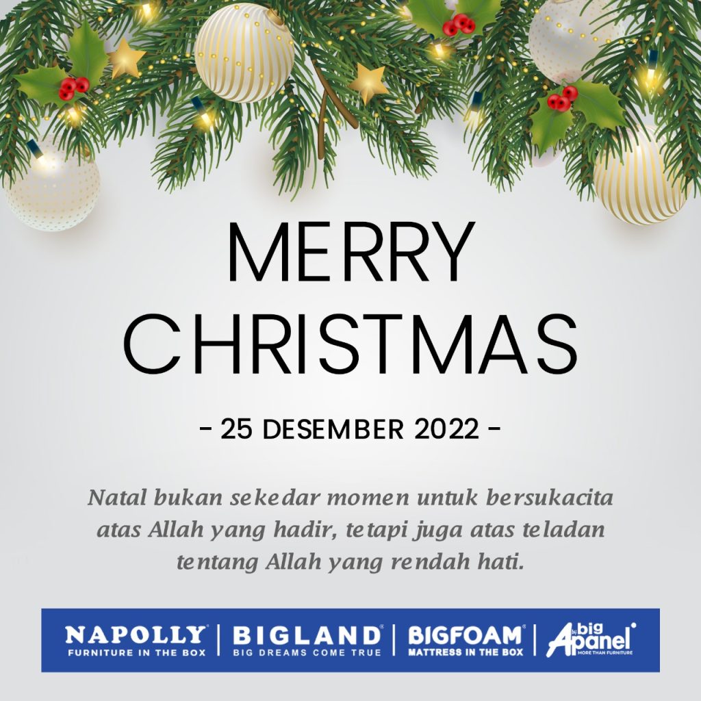 Natal merupakan hari raya umat Kristen yang diperingati setiap tanggal 25 Desember. Hari yang biasanya dirayakan dengan berbagai macam cara, mulai dari beribadah bersama, menghias pohon Natal, bertukar kado, hingga saling berbagi ucapan Natal. Di hari yang penuh berkah ini mari kita maknai dengan penuh rasa damai sejahtera dan kasih sayang untuk semua orang sebagaimana kasih sayang Kristus terhadap seluruh manusia. Selain menyebarkan rasa kasih sayang juga rasa rendah hati sebagaimana makna dari kelahiran Kristus yang penuh dengan kesederhanaan yang menjadikan kita pribadi yang apa adanya dan rendah hati. Kami segenap keluarga besar Cahaya Buana Grup Mengucapkan Selamat Natal Tahun 2022, selamat menyambut Tahun Baru 2023!