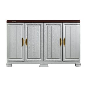 - Lemari Display 4 pintu minimalis dengan motif papan kayu
