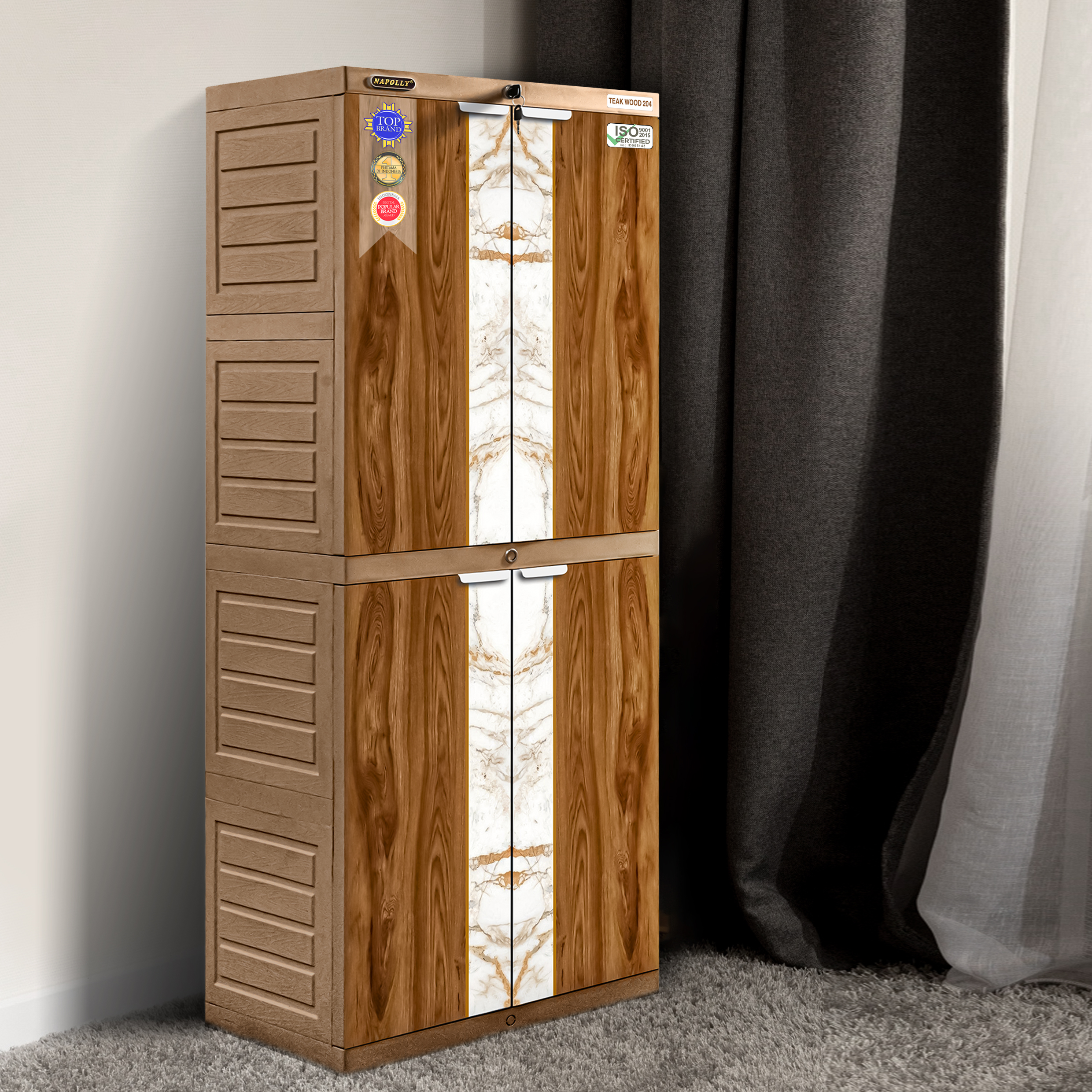 • Lemari 2 tower 4 pintu, dengan motif Teak Wood