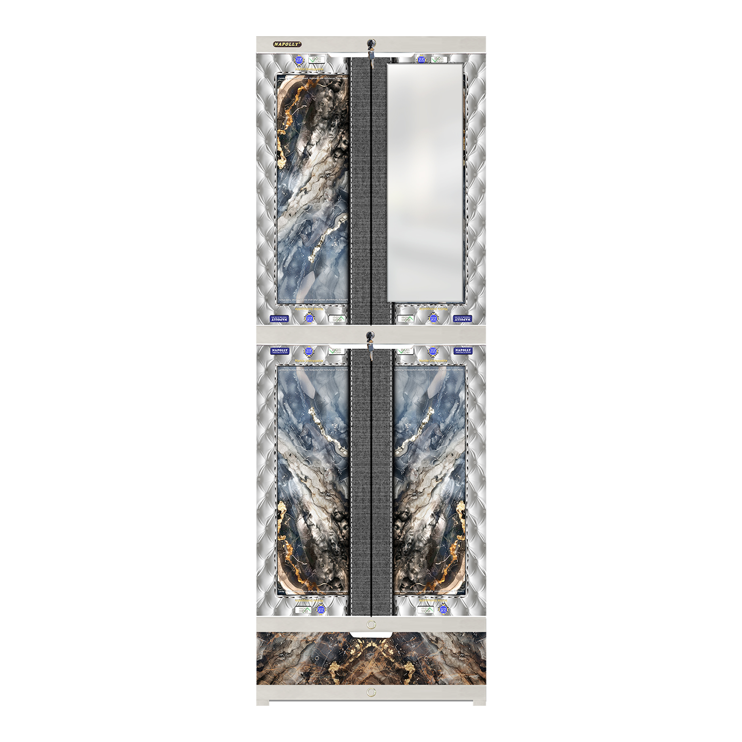 • Lemari 2 tower 4 pintu dan 1 laci, dengan motif Marble Unstoppable