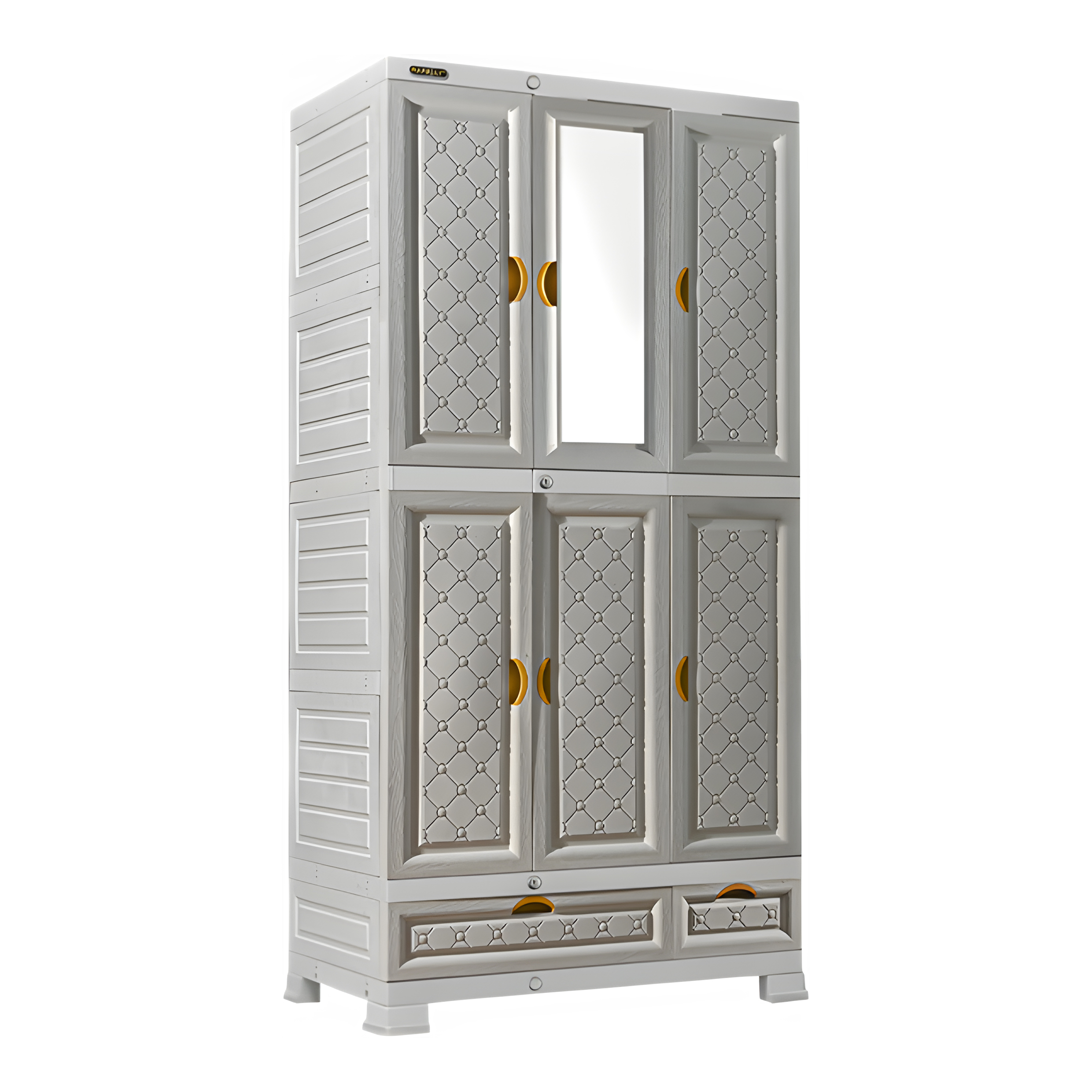 - Lemari pakaian 6 pintu minimalis dengan motif Ion Puma
